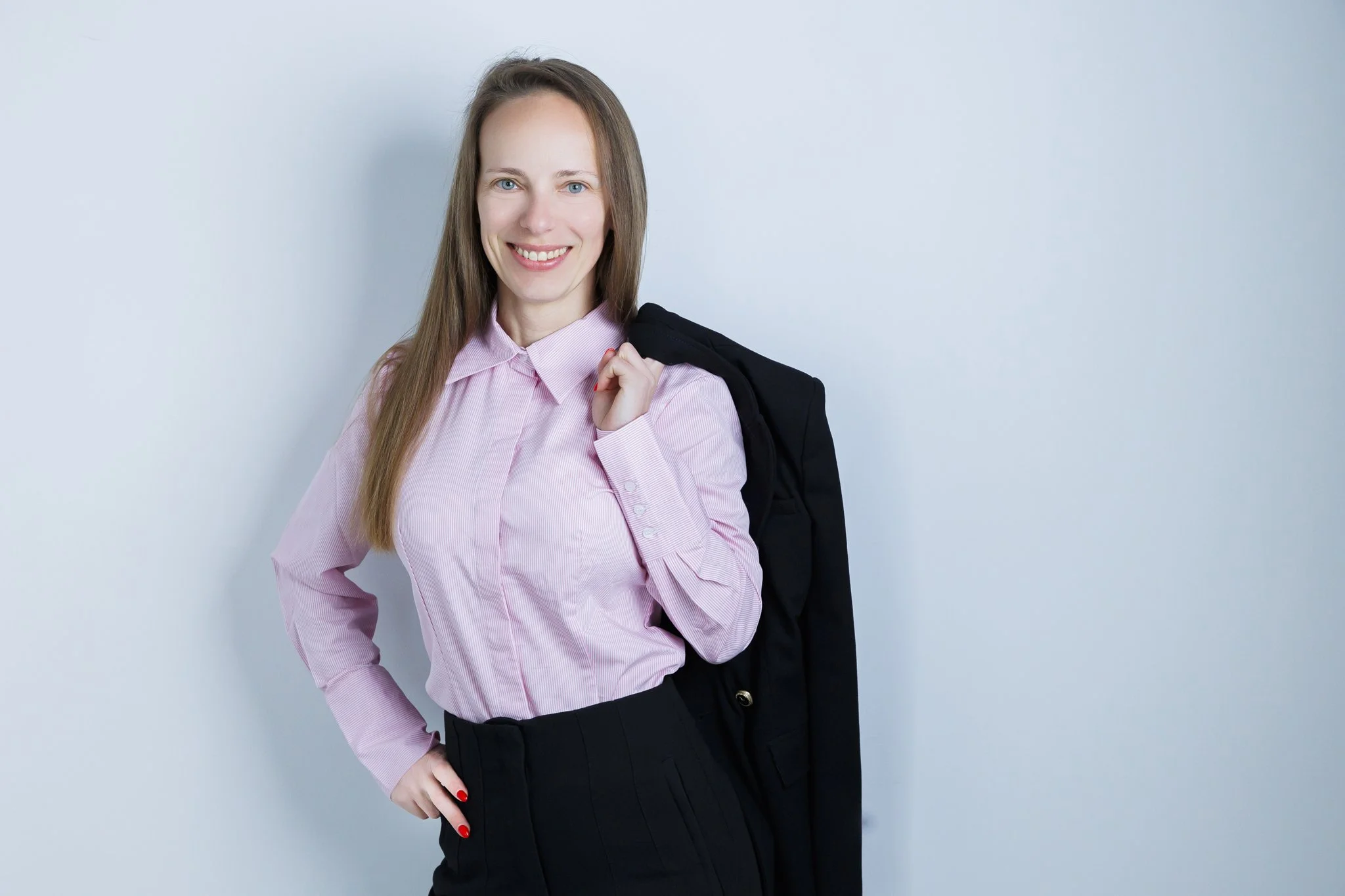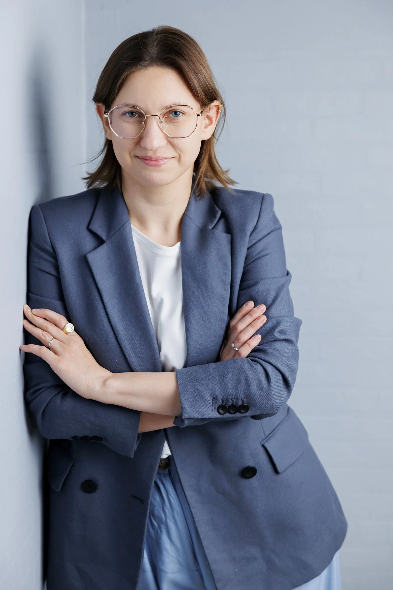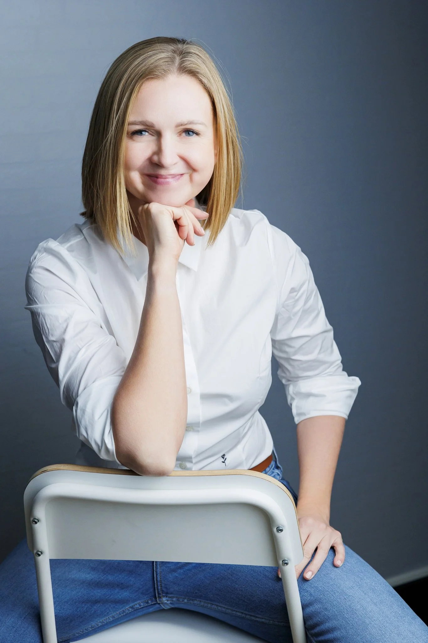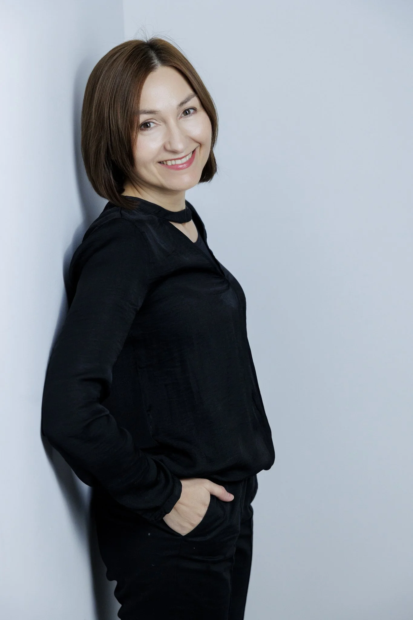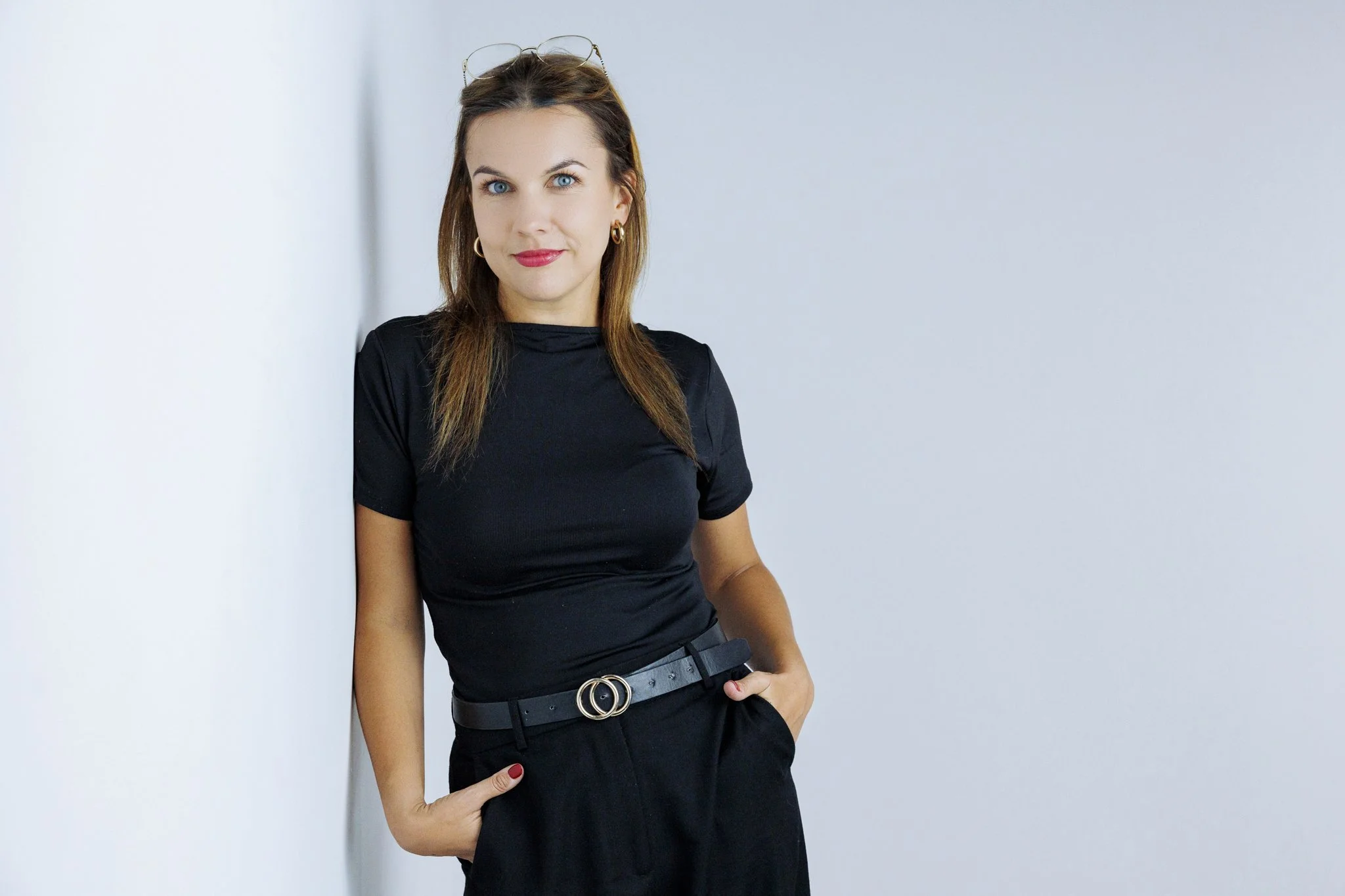Studio daje największą kontrolę nad światłem, tłem i estetyką kadrów. To świetne rozwiązanie, jeśli zależy Ci na eleganckich, czystych, ponadczasowych zdjęciach, które dobrze sprawdzą się na stronie internetowej, LinkedInie i w materiałach eksperckich. Studio jest też dobrym wyborem dla kobiet, które chcą zacząć od spokojniejszej, bardziej uporządkowanej formy sesji.