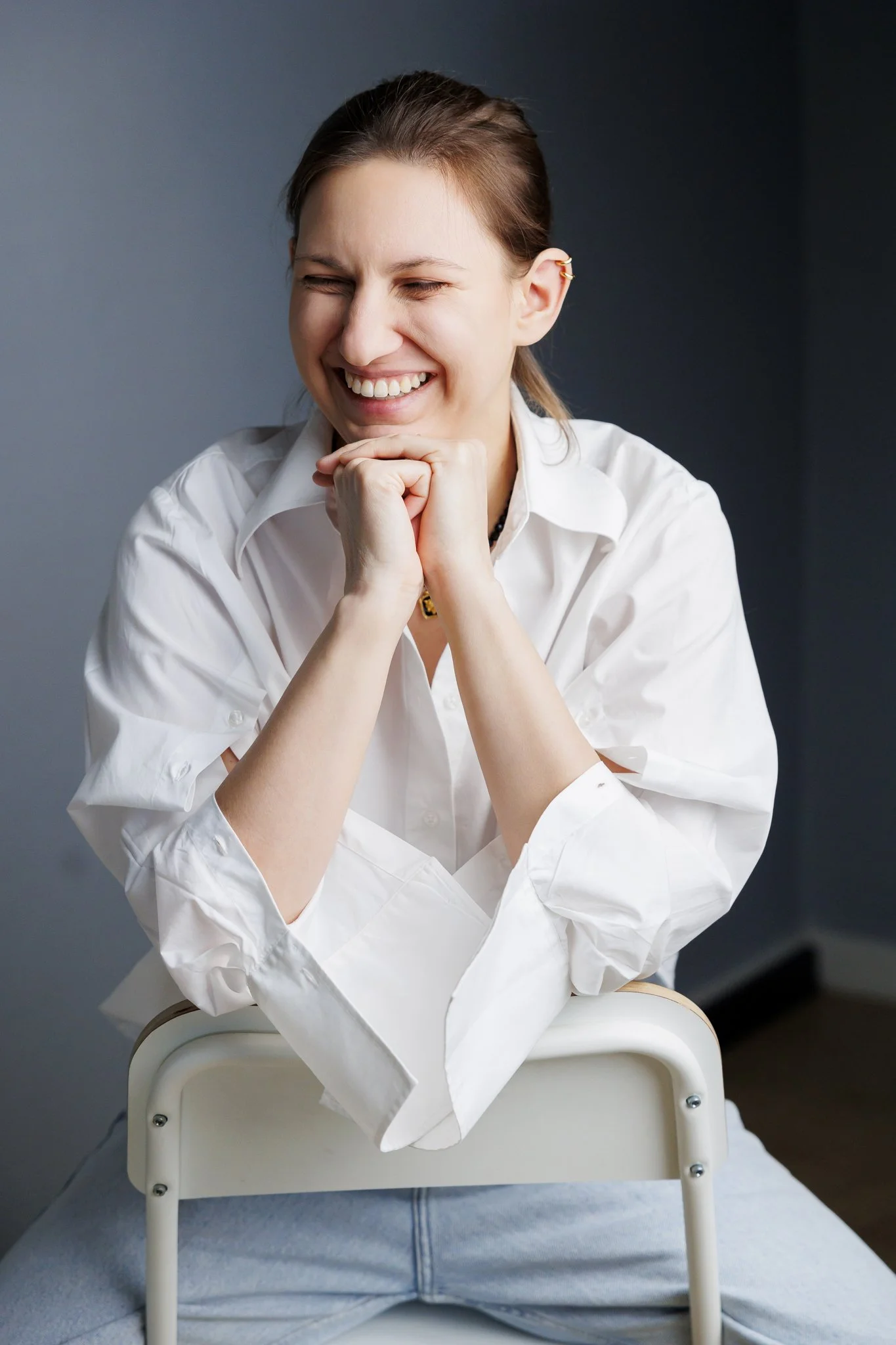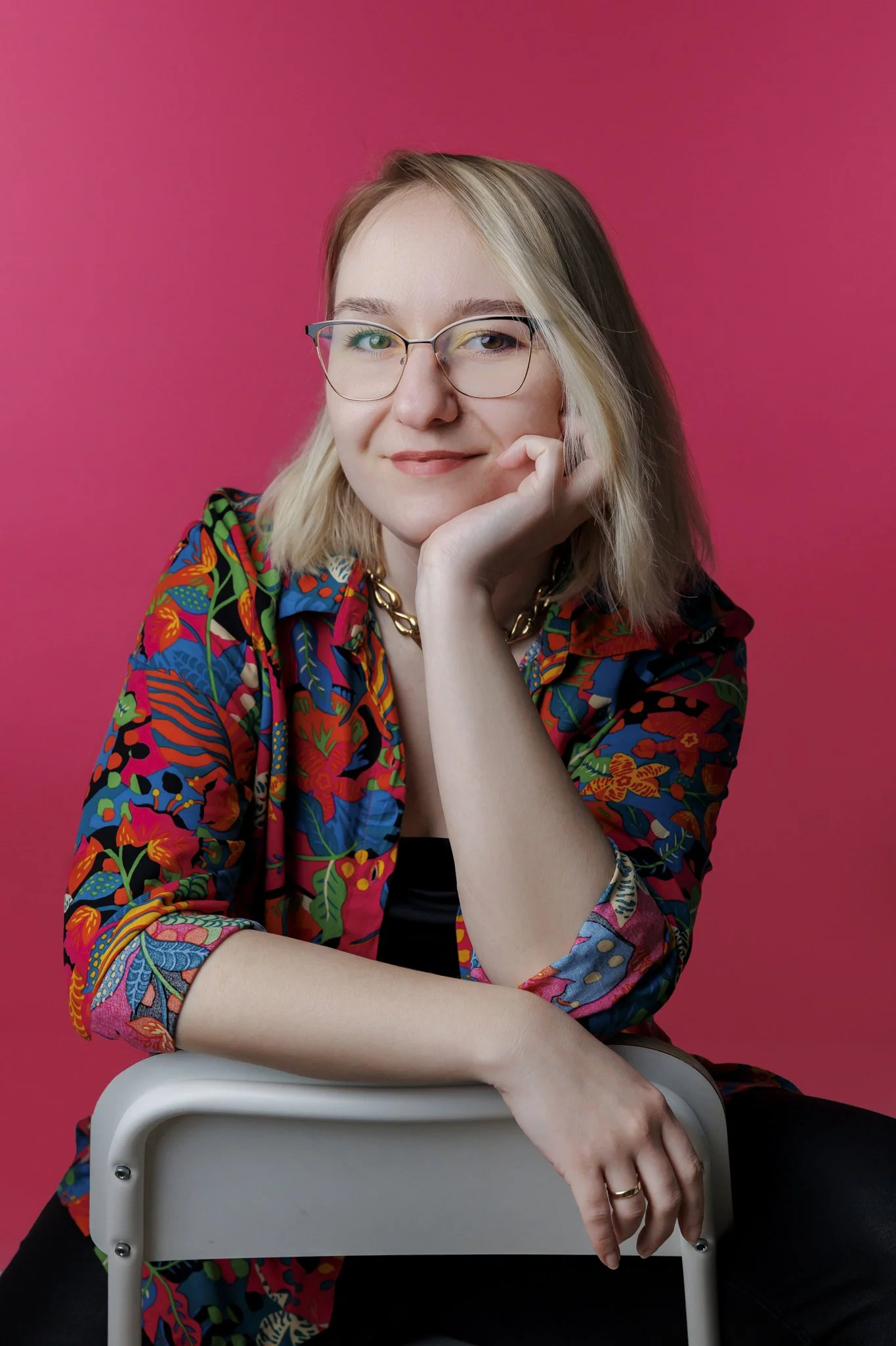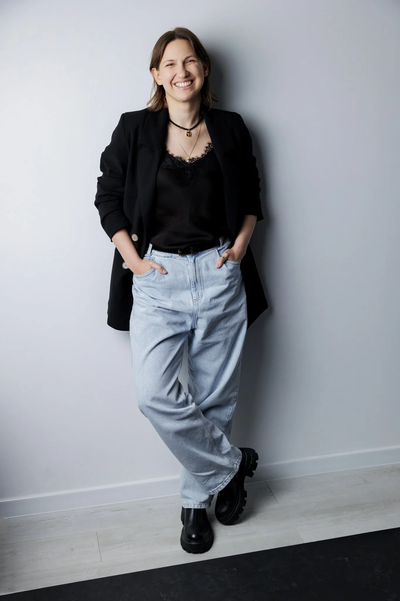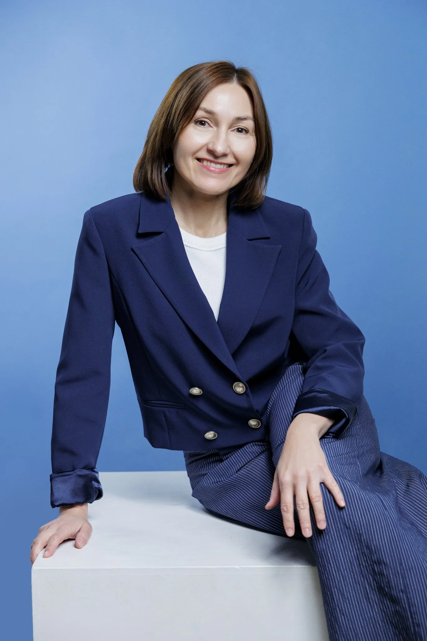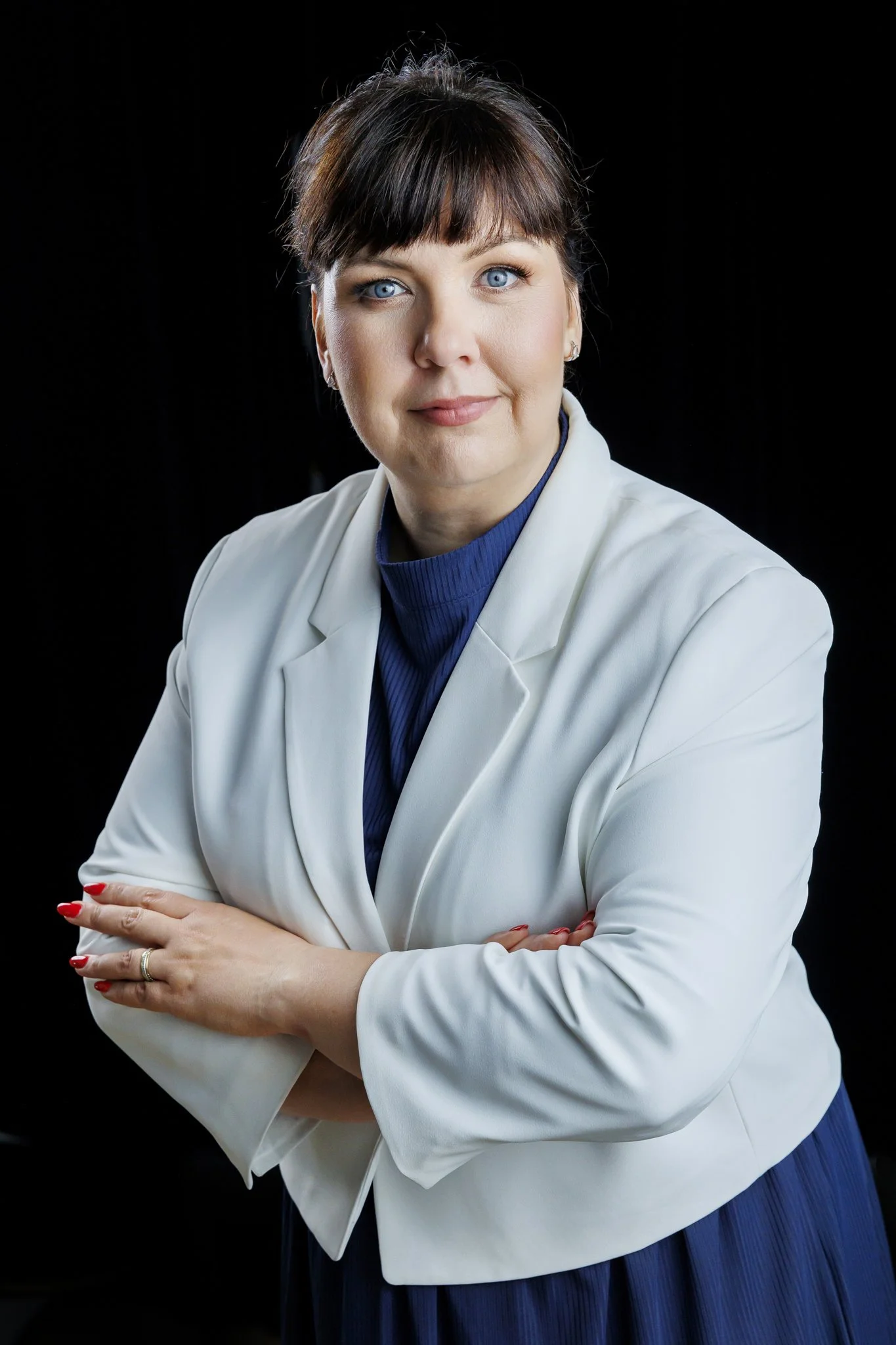 Studio daje największą kontrolę nad światłem, tłem i estetyką kadrów. To świetne rozwiązanie, jeśli zależy Ci na eleganckich, czystych, ponadczasowych zdjęciach, które dobrze sprawdzą się na stronie internetowej, LinkedInie i w materiałach eksperckich. Studio jest też dobrym wyborem dla kobiet, które chcą zacząć od spokojniejszej, bardziej uporządkowanej formy sesji.